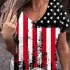 Summer V-neck 3D American Flag Printed Top Fashionable Casual Short Sleeved Women's T-shirts