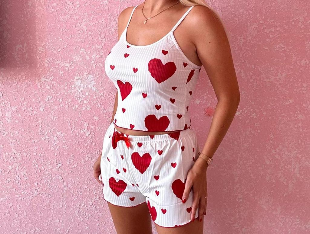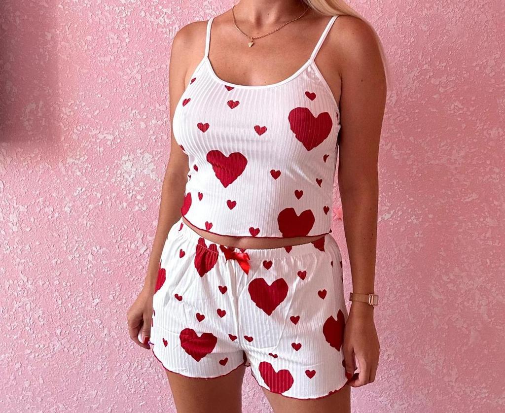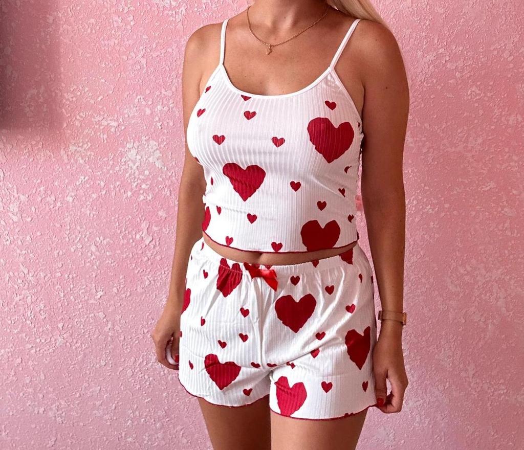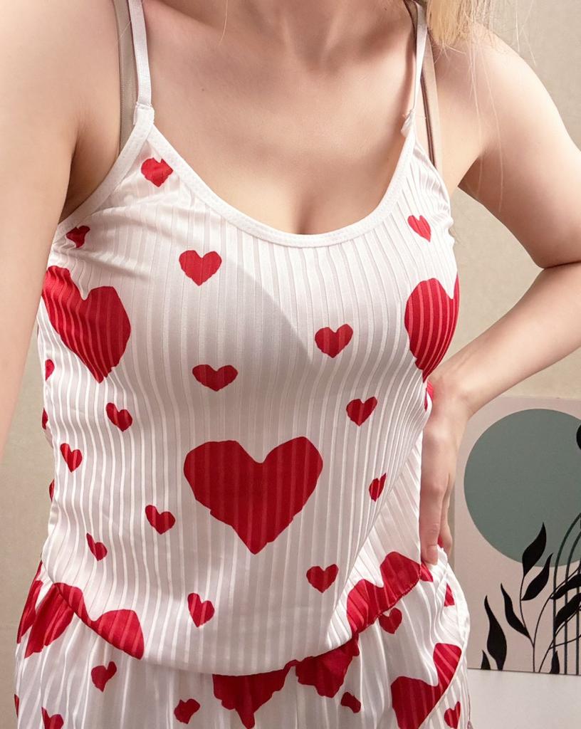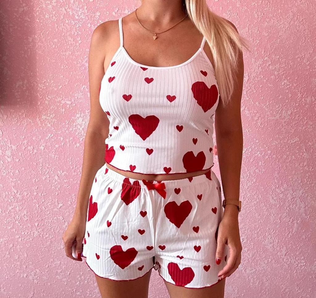 Women's Pajamas Set Sleepwear 2 PCS Short Tank Tops And Shorts S M L White Ventilate Soft Casual Love Printing — buy online with free worldwide shipping!