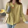 Autumn and Winter Women's Sweater Round Neck Love Button Fried Dough Twists Knitted Cardigan