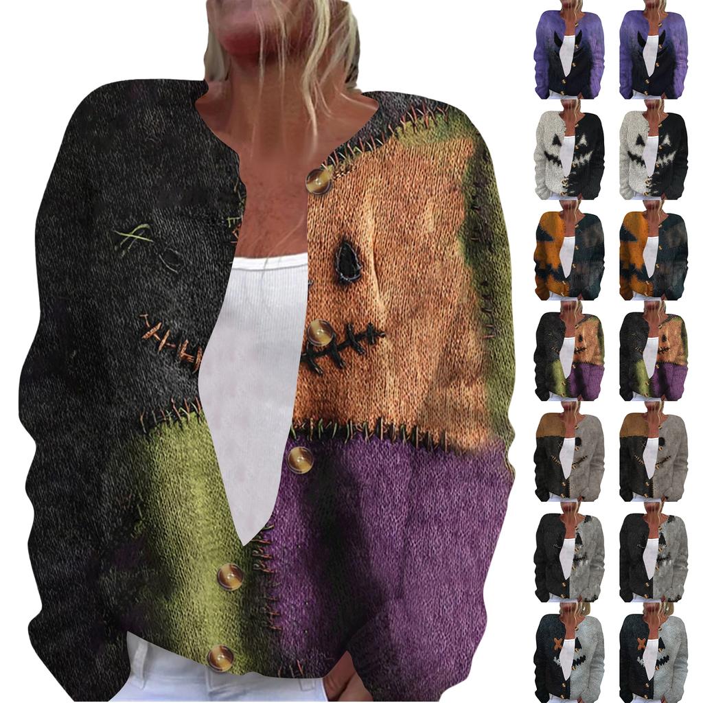 Women's Fashion Printed Long Sleeve Knitted Cardigan Button Down Jacket