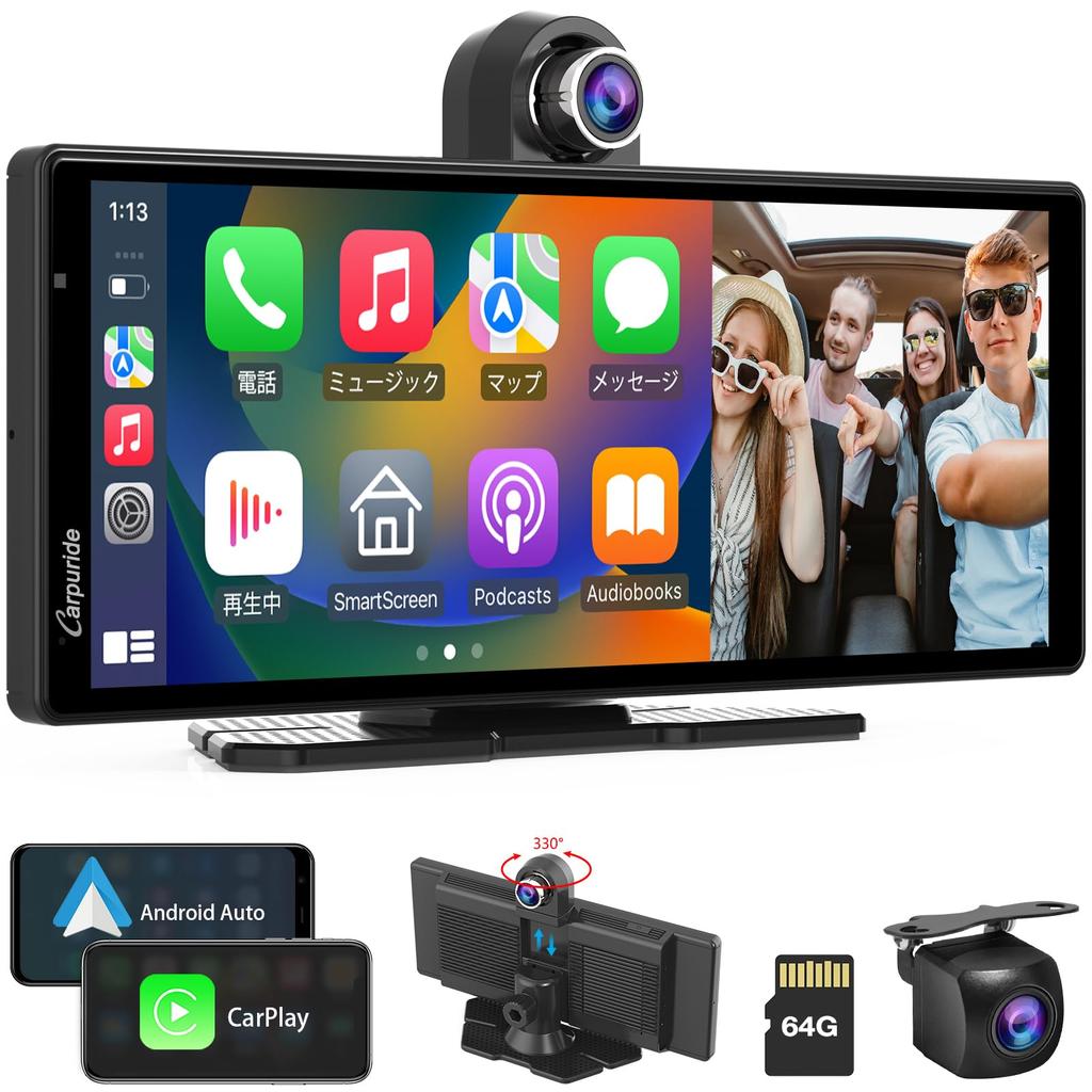 [Portable Display Audio] Carpuride's portable navigation system can be used in four wireless modes: CarPlay, Android Auto, AirPlay (iPhone wireless mirroring function), and Android Cast (Android mirroring function). Simply connect your smartphone via CarPlay or Android Auto to make and receive calls, navigate, and play music. (This is not a car navigation system with built-in GPS; you can use the navigation app's functions by connecting your smartphone to CarPlay or Android Auto.)