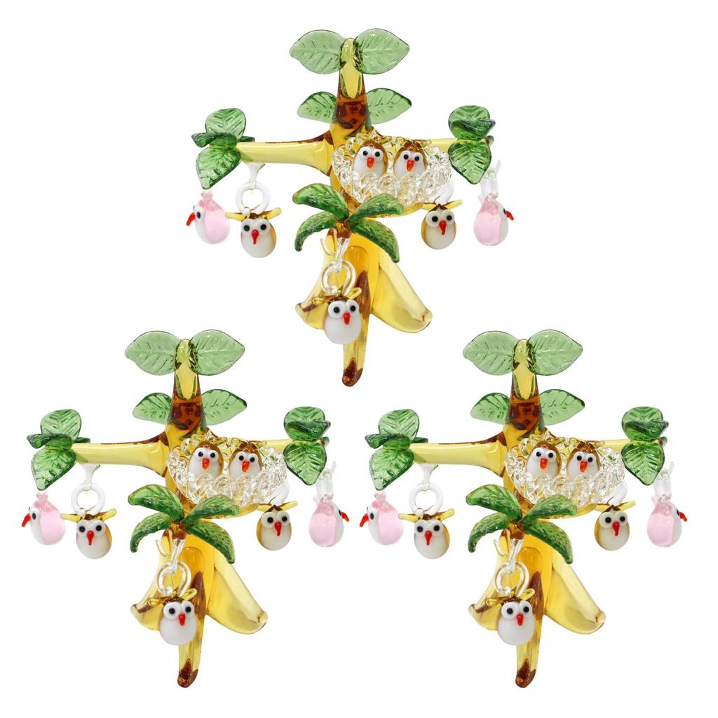Fourcart Cute Handmade Glass Craft [Owl Nest Tree] X 3-Piece Set