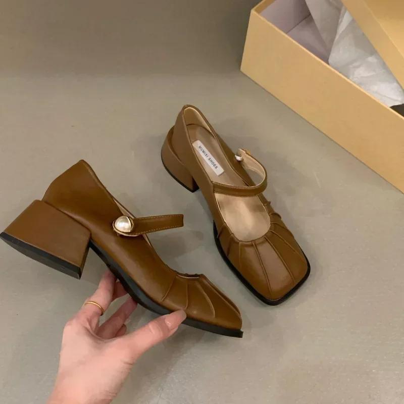 Fashion Women Casual Mary Jane Fashion Shallow Design Soft Leather Mary Janes Shoes Autumn Dress Square Head Women Lolita Platform Shoes