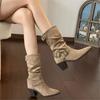 Fashion Women Boots Pointed Coarse Heel Short Boots British Style Belt Buckle Women Boot High Quality Fashion Temperament Leather Boots