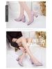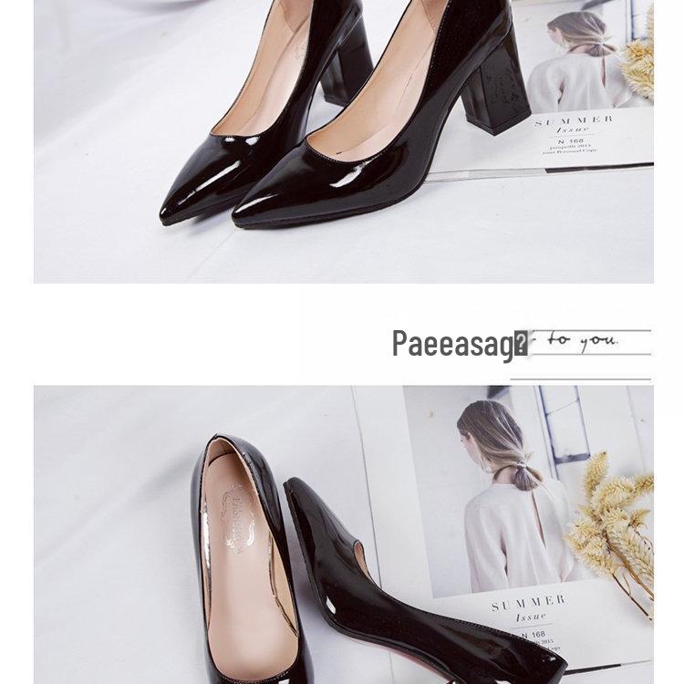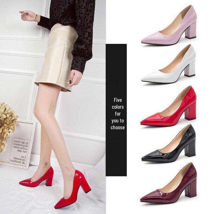 2017 Women's Suede Chunky Heel Low-Top Slip-On Shoes - Pointed Toe, Solid Color, Shallow Mouth
