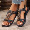 Fashion Vintage Ethnic Wind Soft Sole Sandals Women Boho Beaded Non-Slip Vacation Seaside Flat Beach Shoes Plus Size