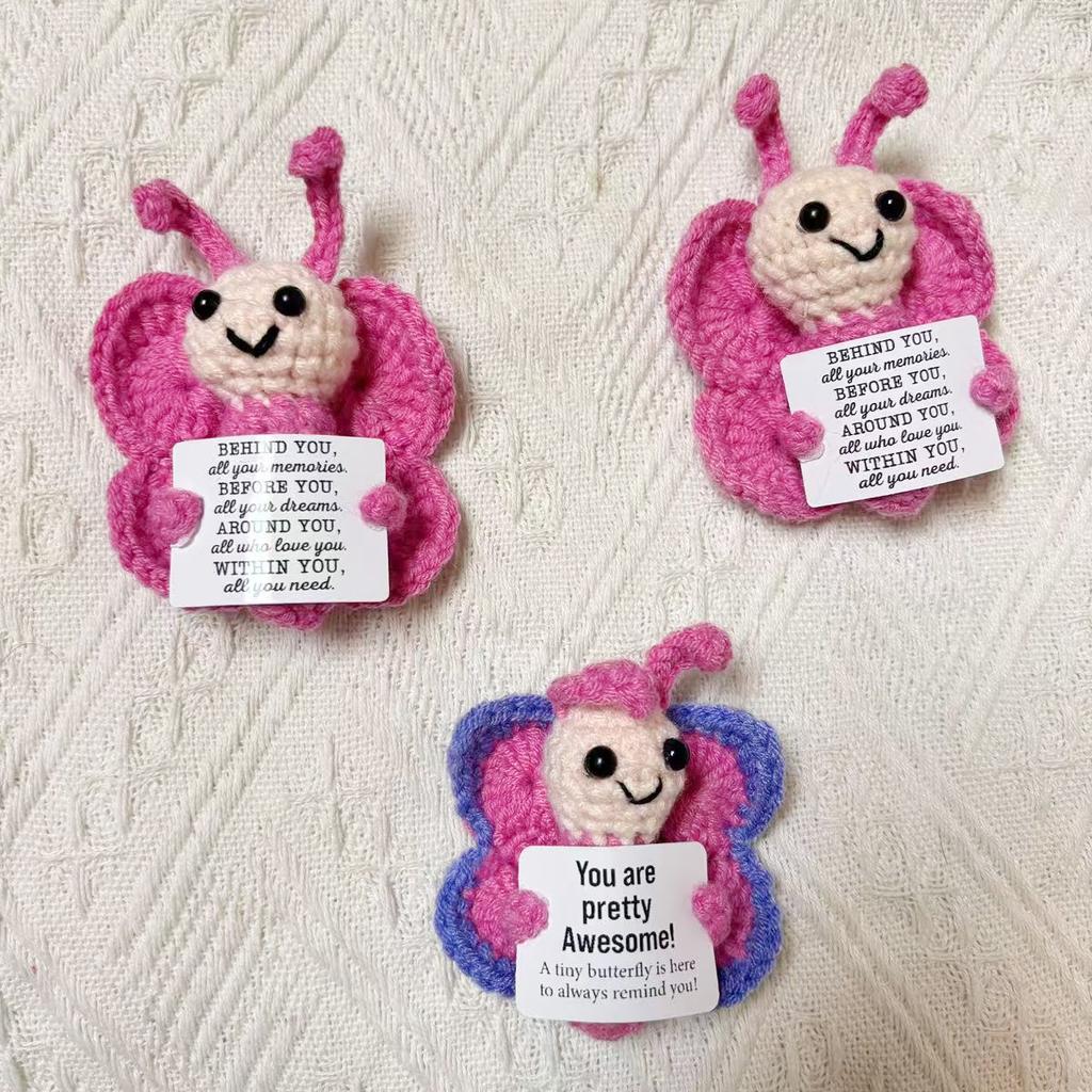 Funny Crochet Positive Emotional Support Butterfly Doll Home Room Decoration Handmade Knitted Butterfly Desktop Ornament Gift