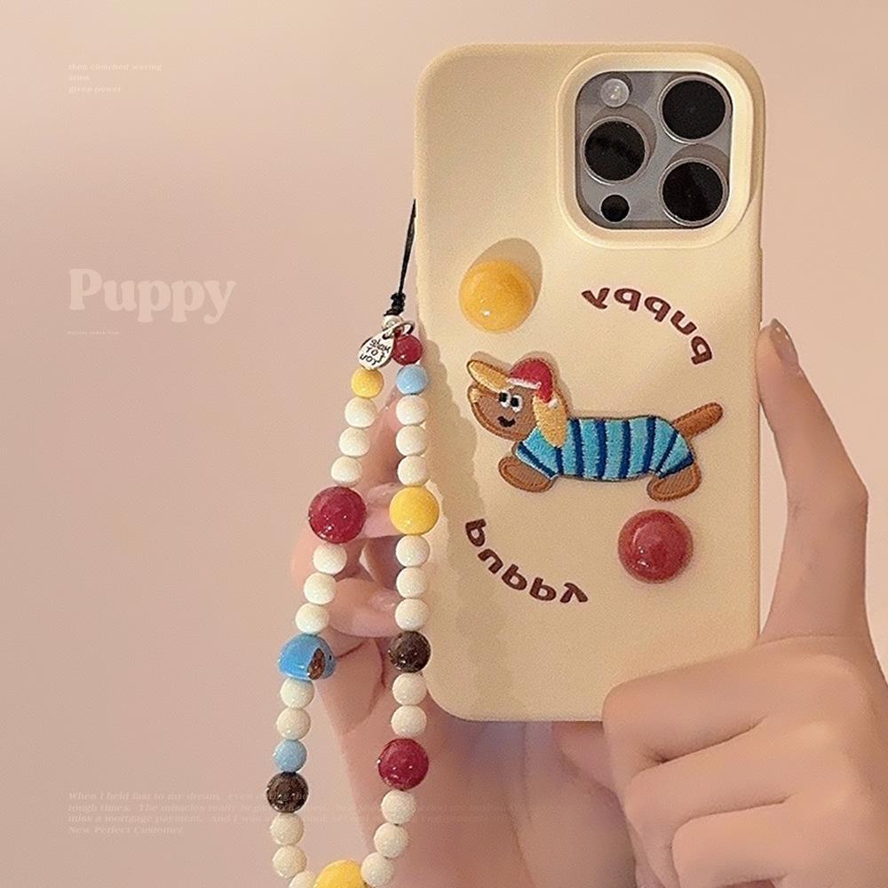 Embroidered Puppy Apple 16 Mobile Phone Case Color Polka Dot Bracelet Iphone17 Suitable for 13 Silicone 15promax Three dimensional — buy online with free worldwide shipping!