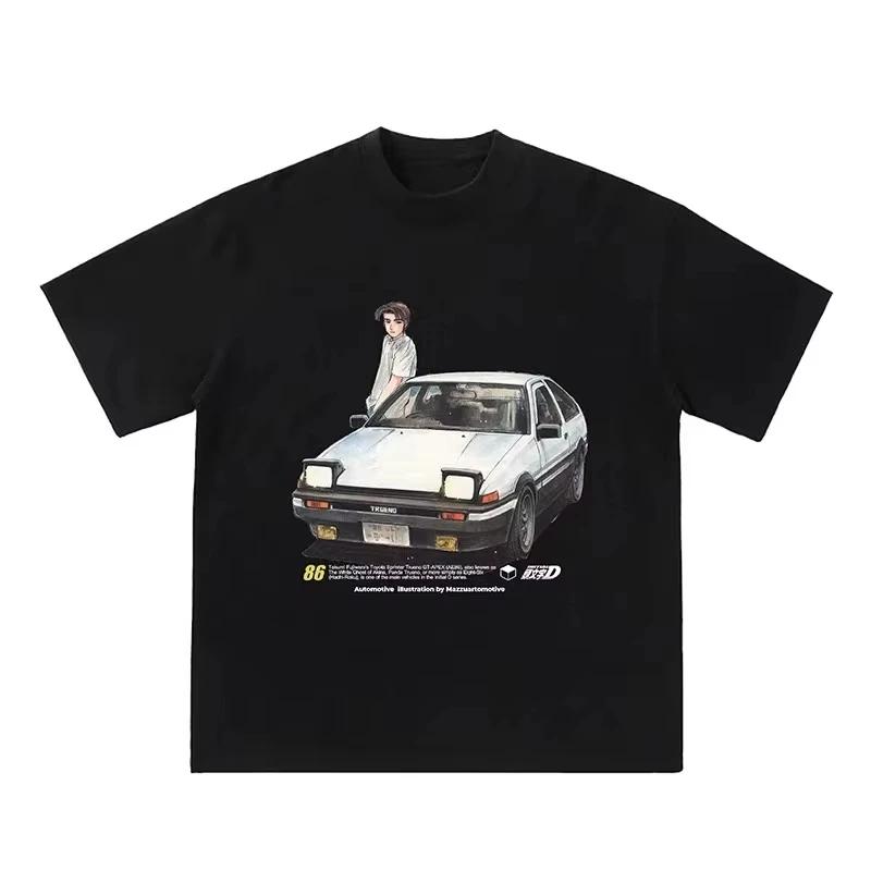 Japanese Retro Anime Initial D Speed Car Soul Printed Short Sleeve Cotton Loose Men's Casual Loose Short Sleeve T-shirt Trendy