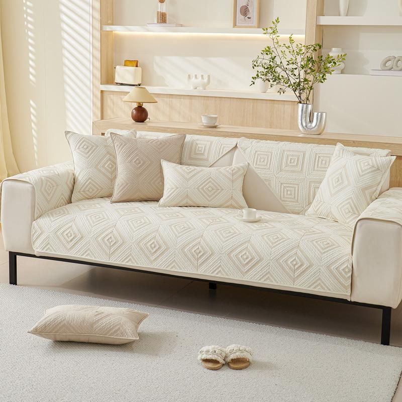 Solid Color Cotton Fabric Non-Slip Sofa Cushion Pure Cotton Four-Season Universal Seat Cushion Simple Modern Backrest Towel Light Luxury — buy online with free worldwide shipping!