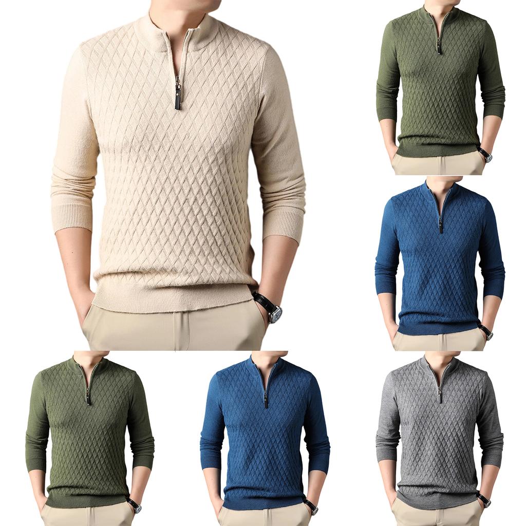 Men Trend Leisure Half Zipper Standing Collar Knitted Sweater Sweater
