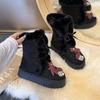 Women's Large Size Lace-up Fur Mouth Thick Sole Soft Sole Winter Warm Fur Snow Boots Padded Lined Ankle Boots Non-Slip Hiking Sports Cotton Boots