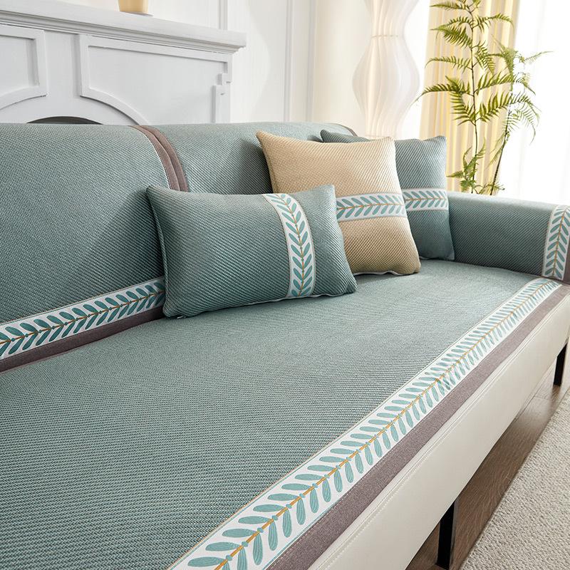 Wormwood Ice Vine Sofa Cushion Summer Summer Ice Silk Mat Non-Slip Seat Cushion Solid Color Leather Sofa Cover Cloth Towel