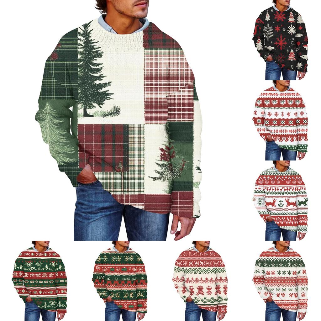 Men's Christmas Print Faux Sweater, Crewneck Sweatshirt, Loose Long-sleeved Top — buy online with free worldwide shipping!