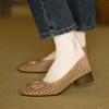 Commuter Metal Buckle Square Head Breathable Hollow Hole Shoes Retro Soft Leather Thick Heel Mary Jane Small Leather Shoes Women