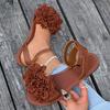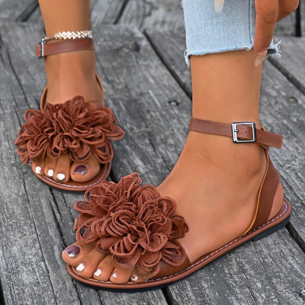 Fashion Elegant Flower Flat Sandals for Women 2025 Summer New Voyeur Women Pump Silk Shallow Ankle Buckle Sandals Shoes for Women