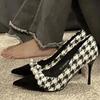 Fashion Fashion Pearls Decoration High Heels Shoes Women Plaid Thin Heels Party Pumps for Woman Spring Autumn Pointed Toe Pumps Female