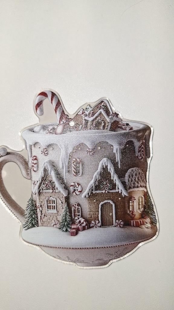 Coffee Cup Ornaments For Christmas Tree 2D Acrylic Christmas Snow Houses Chocolate Mug Pendant Christmas Tree & Car Decor