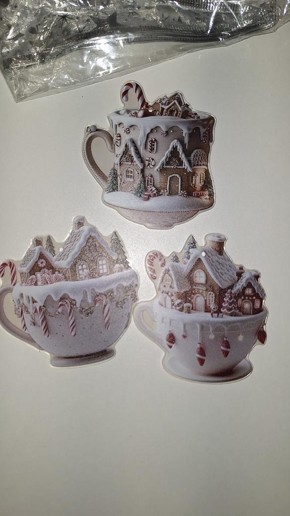 Coffee Cup Ornaments For Christmas Tree 2D Acrylic Christmas Snow Houses Chocolate Mug Pendant Christmas Tree & Car Decor — buy online with free worldwide shipping!