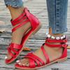 Fashion Summer Plus Size Gladiator Sandals Women Corss Band Back Zipper Flat Heels Sandals Woman Outdoor Non Slip Casual Sandles Female