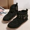 Fashion Women Winter Large Size Rivet Boots Woman Retro Ethnic Western Cowboy Boots Block Flat Heels Tassel Fringe Ankle Boots