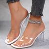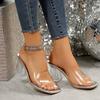 Fashion Elegant Transparent Pvc Clear High Heels Slippers Women 2025 Summer Square Toe Crystal Sandals Women Sexy Slip On Party Shoes