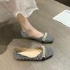 Single Shoes Women's Spring New Pearl Pointed Head Shallow Mouth Flats Fashion Thousand Bird Grid Mary Jane Shoes