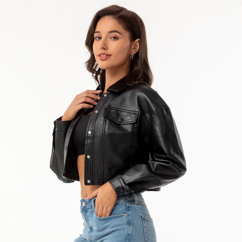 Spring and Autumn New Loose Casual Leather Jacket Women's Long-sleeved Single-breasted Women's Short Jacket Lapel Fashion