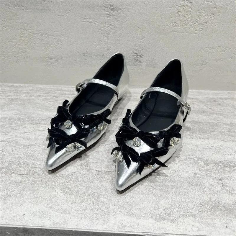 Fashion Spring and Autumn New Rhinestone Temperament Pointed Toe Low-heeled Mary Jane Shoes French Women's Singles Shoes — buy online with free worldwide shipping!