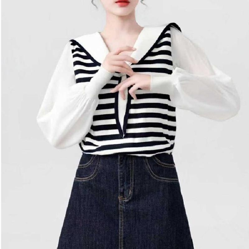 Polo Collar Fake Two Long-sleeved Knitted Sweaters for Women's Autumn and Winter New Design Sense, Niche Patchwork Shirt Short Top — buy online with free worldwide shipping!