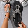Fashion Blue Rhinestones Flat Sandals for Women Summer 2025 Bohemian Style Comfort Beach Shoes Woman Lightweight Clip Toe Roman Sandals — buy products online with free worldwide shipping!