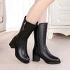 Winter New Cotton Boots Thick Heel High Boots Medium Shoes Velvet Warm Non-slip High Heel Fashion Leather Boots