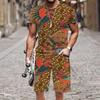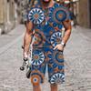Summer Fashion Casual Men's Suit Vintage Pattern 3D Printed Sportswear Short-sleeved Suit Oversized Round Neck T-shirt Shorts 2-piece — buy online with free worldwide shipping!