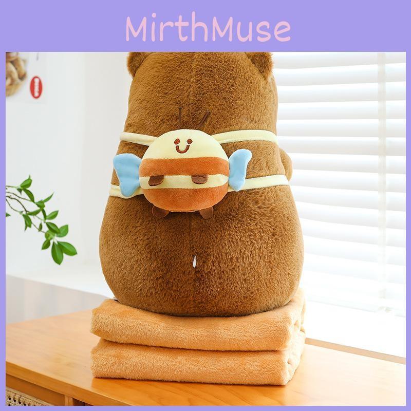 The Capybara Plush Stuffed Animal combines functionality and charm, serving as both a cozy companion and a practical 2-in-1 pillow and blanket. This versatile design features a 40cm tall plush capybara filled with soft PP cotton, paired with a 1*1.6m blanket, making it ideal for office, car, or home use. The short plush fabric ensures durability, while the animals realistic design adds a touch of warmth to any space.Available in a variety of themed designs such as turtle, bee, and strawberry hat.Its compact size and lightweight construction make it portable, while the all-weather protection layer ensures consistent softness and warmth.