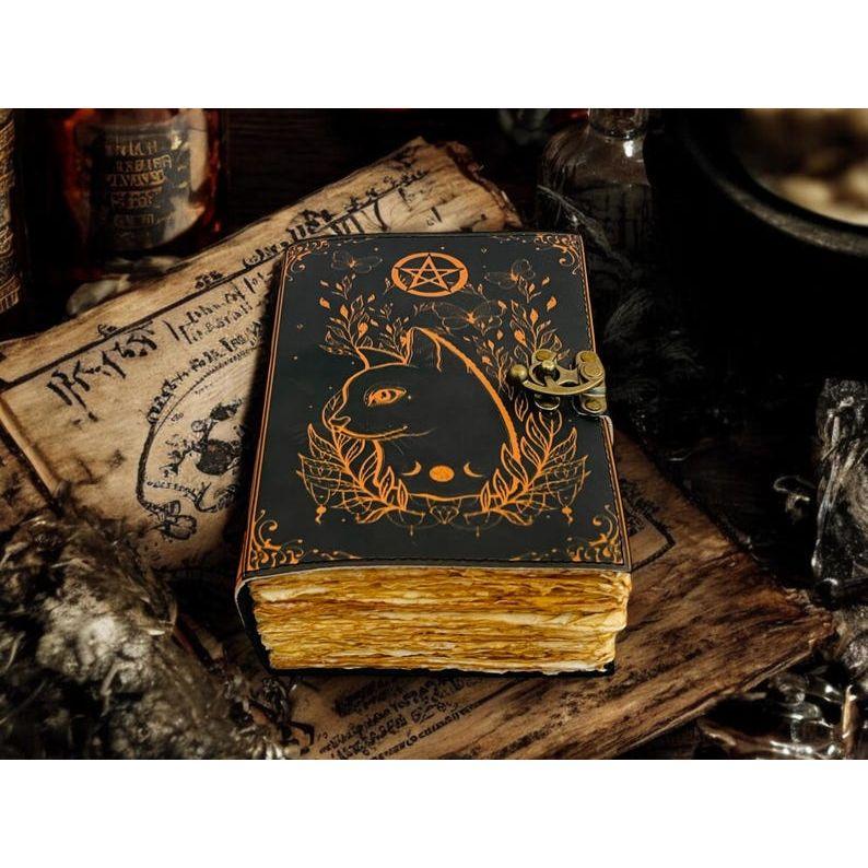 The cover features a mesmerizing magic cat print that exudes an aura of mystique and allure, making it a perfect gift for cat lovers and magic enthusiasts. The rich, supple leather cover not only provides durability but also adds a touch of sophistication to your journaling experience.