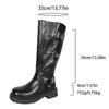Fashion Women's Adjustable Buckle Riding Boots with Side Zipper Fashion Black PU Leather Knee High Boots Women Autumn Winter Long Botas