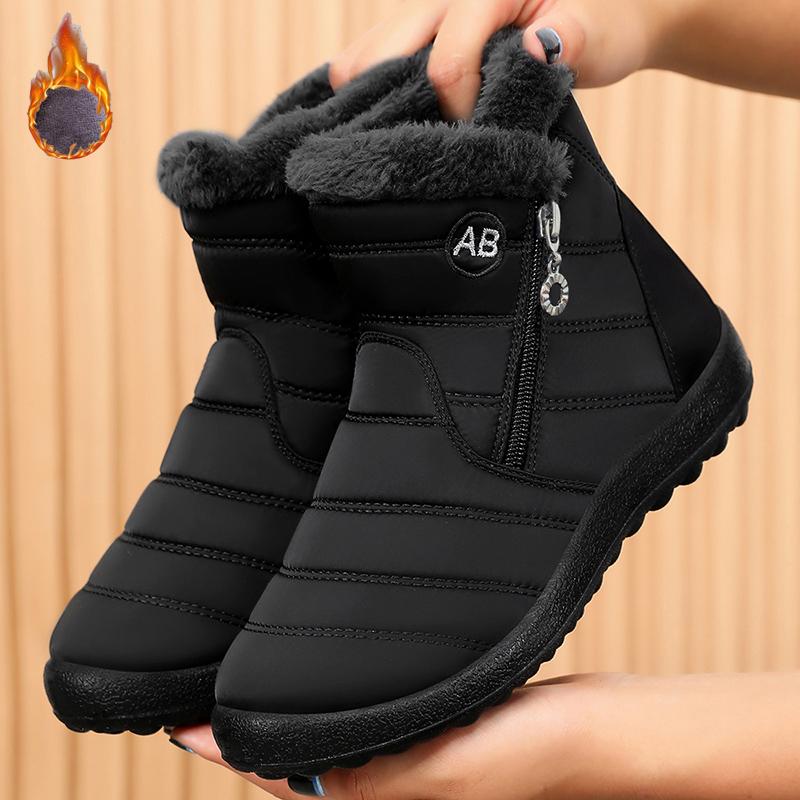 Fashion New Winter Warm Women's Snow Boots with Side Zipper Non Slip Waterproof Ankle Boots Woman Plus Size Faux Fur Lined Cotton Shoes