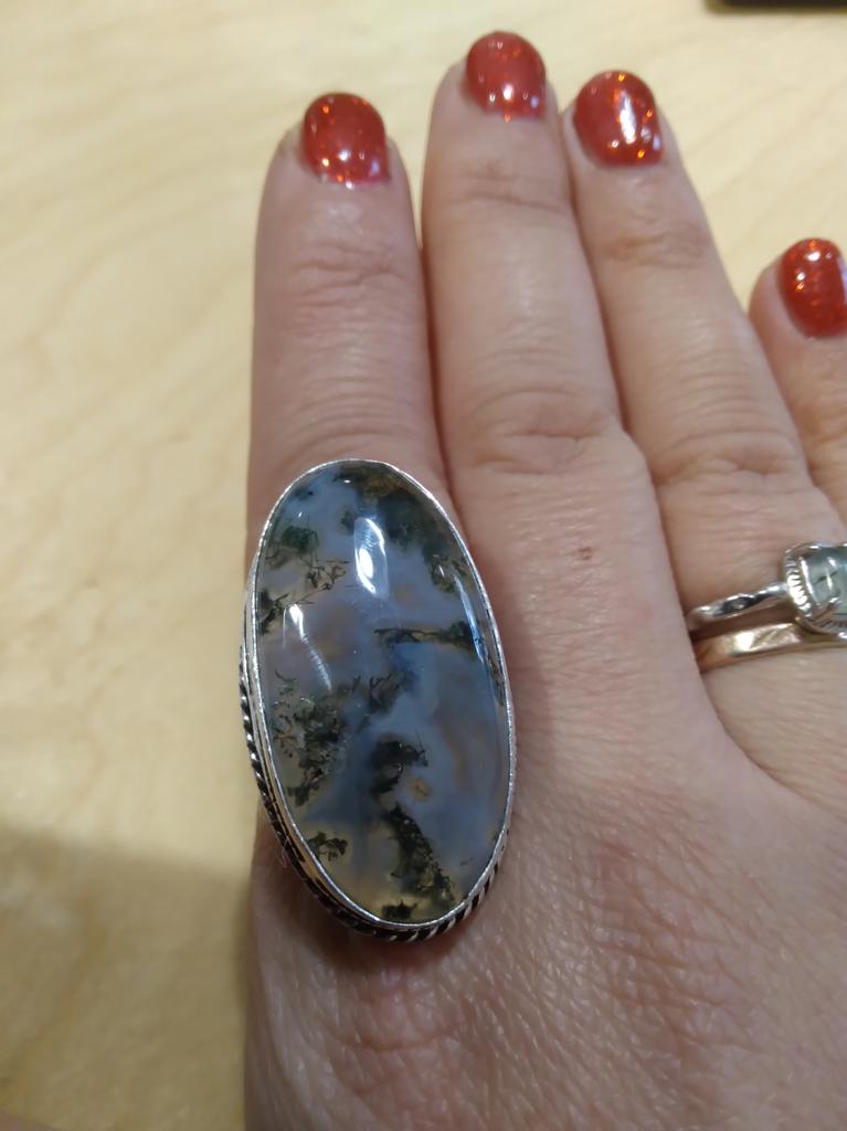 Indian Moss Agate Gemstone 925 Sterling Silver Gift Jewelry Ring Size 10
