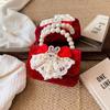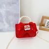 Red Delightful Cute Bowknot Childrens Handbag With Trendy Chain And Pearl Handle