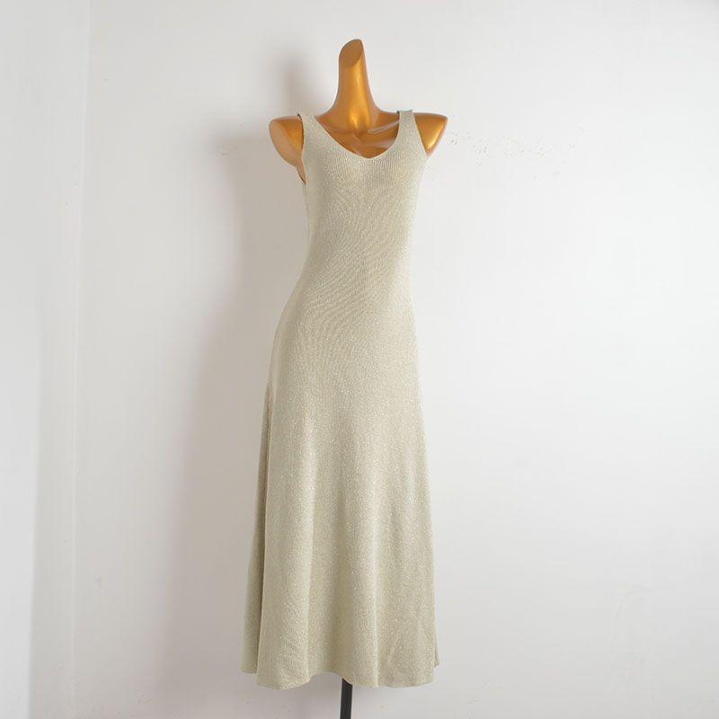 French Sexy V Neck Sleeveless Knitting Dress Women's Spring/Summer New Arrival Silm Slim Looking Waist-Tight Hip-Wrapped Sleeveless Dress