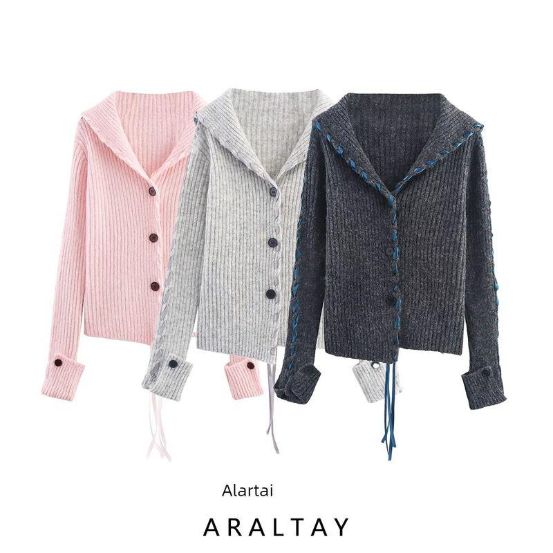 Araltay New Arrival Fashion Style Women's Clothing Fashion All-Match Casual Minimalist Asymmetric Decorative Ribbon Knitting Outwear