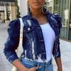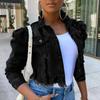 Autumn Women Coat Jackets Sexy Long Sleeve Pocket Ripped Denim Jacket Streetwear Short Coat Plus Size