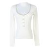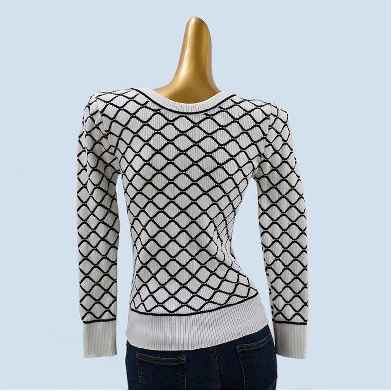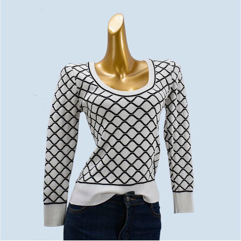 French Style Retro U Collar Quilted Embroidered Knitwear Female Fall and Winter New Arrival Silm Slim Looking Inner Bottoming Sweater Thick