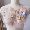 1 Piece Large 3D Lace Applique Trim Patches Pearl Purple Flower For Prom Wedding Dress Accessory Lace Fabric DIY 33*26cm