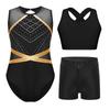 3Pcs Girls Gymnastics Set - Sleeveless Leotard with Keyhole Back, Cross Vest & Rhinestone Shorts for Dance/Performance — buy online with free worldwide shipping!