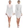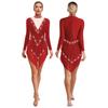 Women's Latin Dance Dress S-XXL - Shiny Rhinestones Mock Neck Long Sleeve with Tassels & Irregular Hem Stage Costume