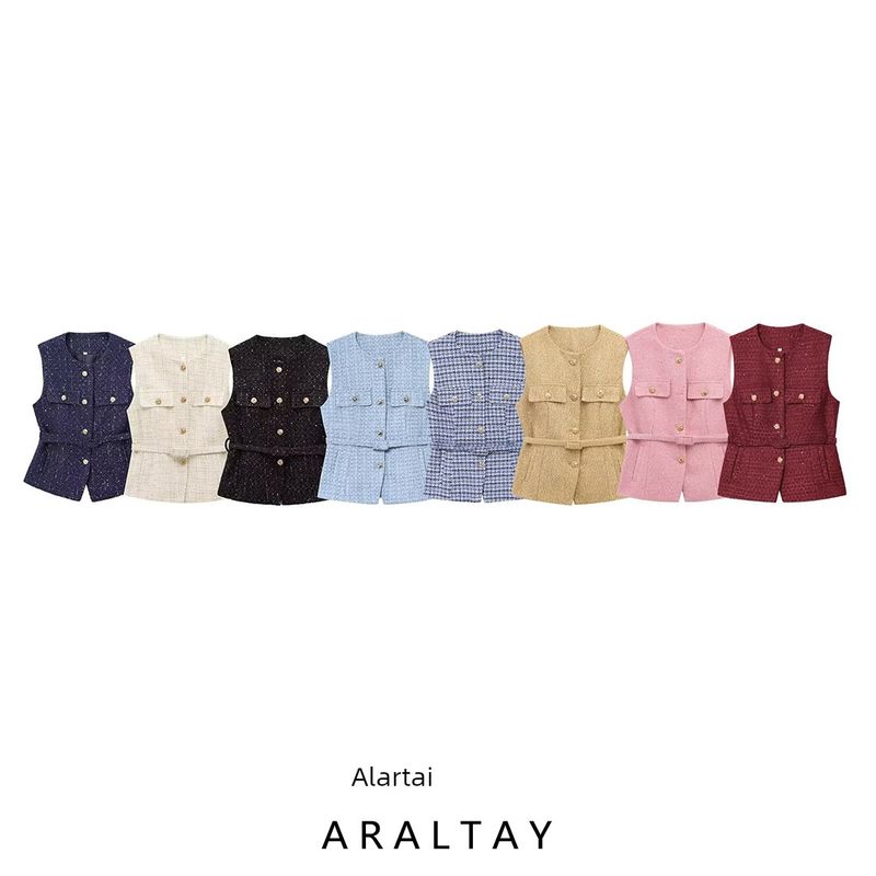 Araltay New Western Style Women Clothes Fashion With Belt Sequin Decorative Texture Vest Top 9298725