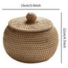 1 × Wicker Storage Basket with Lid (Round, Handmade).