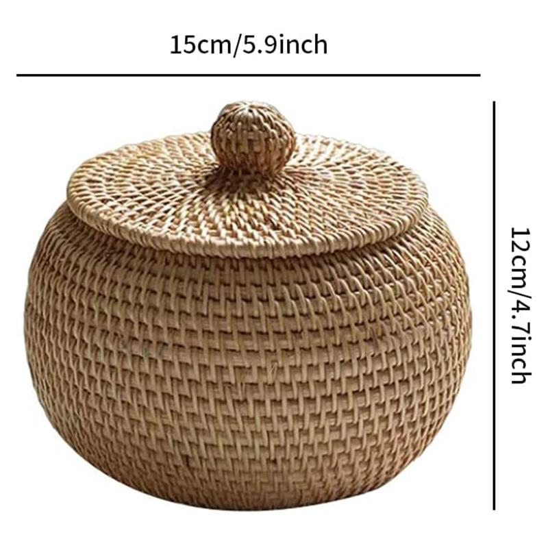Bring the charm of natural rattan craftsmanship into your home with this Wicker Storage Basket with Lid. Designed for both functionality and style, this handwoven round basket is ideal for storing fruits, snacks, sundries, and small household items, keeping your space neat and organized while adding a rustic decorative touch.