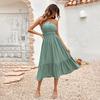 Women Summer Casual Sleeveless Strapless A-Line High Waist Solid Color One Collar Dresses Spring S-XL Middle Long Dress
